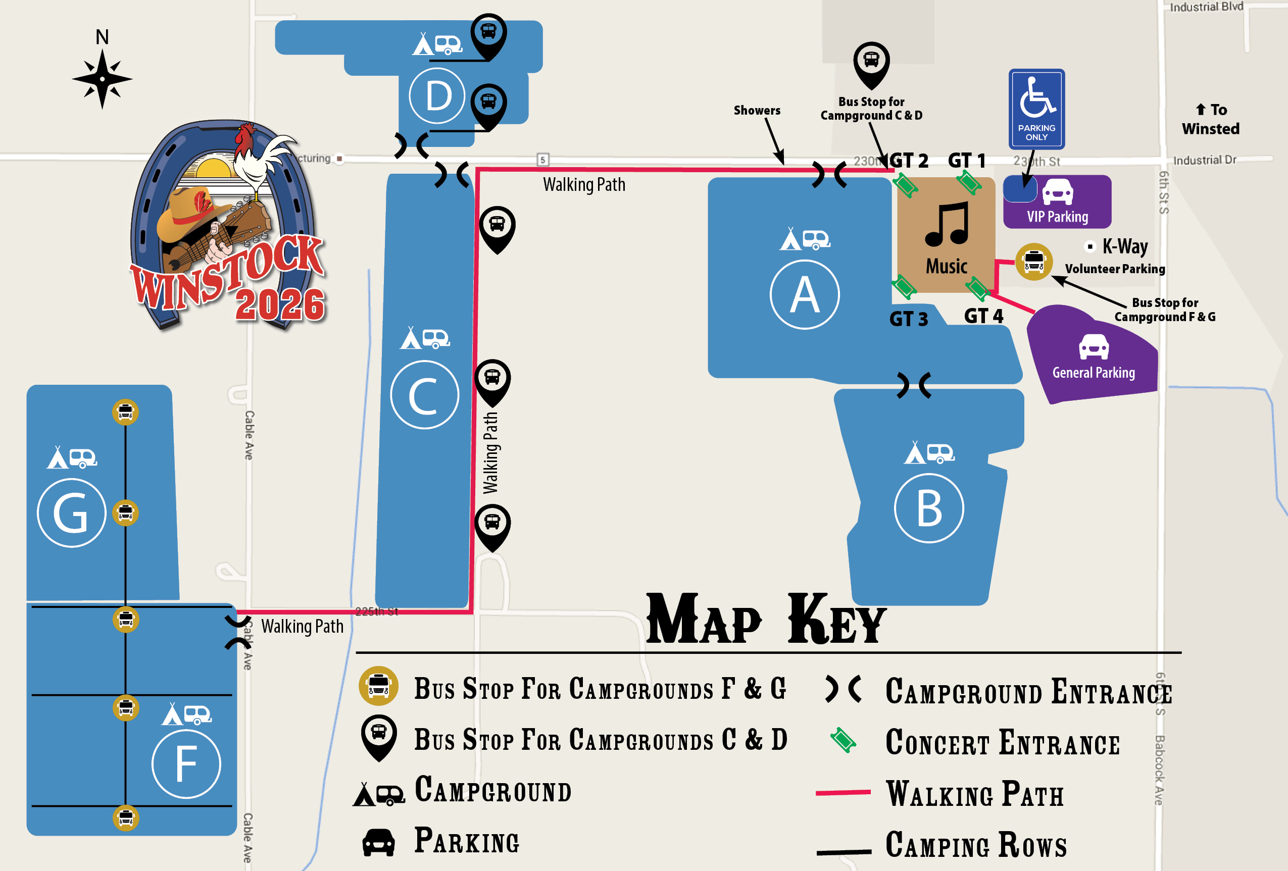 Winstock Rideshare, Uber/Lyft pickup/drop-off